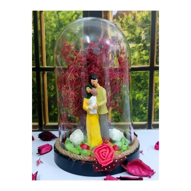 Fanus Teraryum Tesettürlü Sarılan Aile Temalı Hediyelik Kuru Çiçeklia