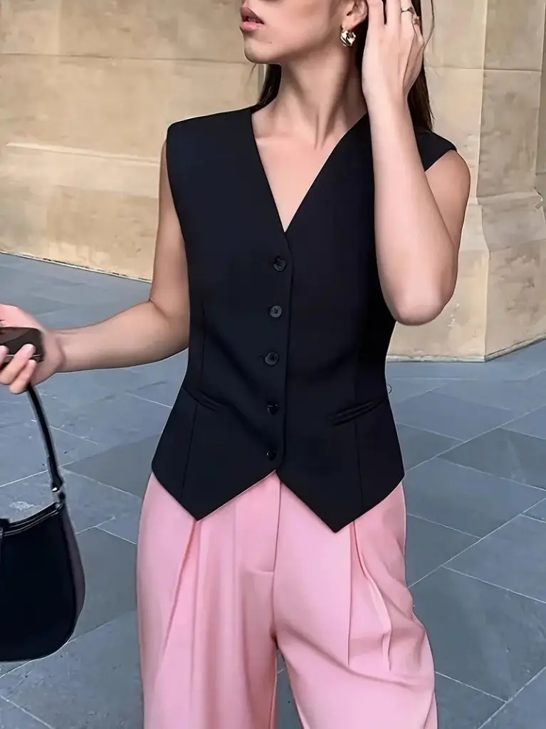 Kadın Sıfır Kollu önden Düğmeli Atlas Yelek
