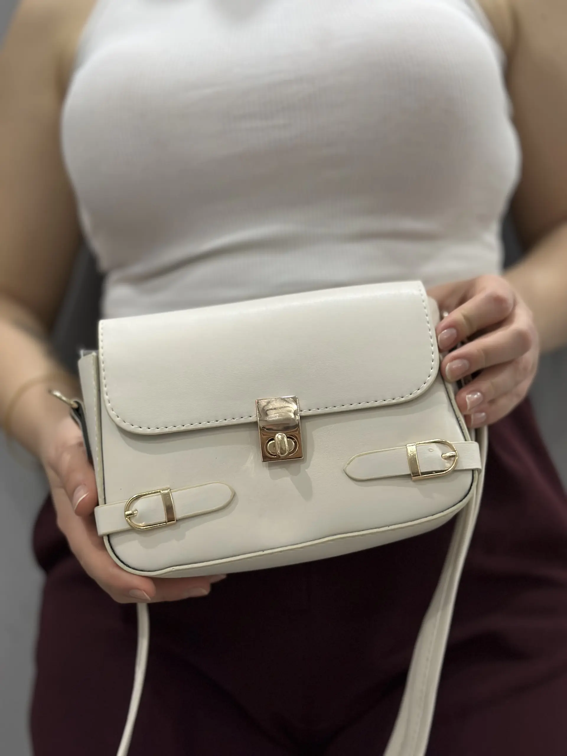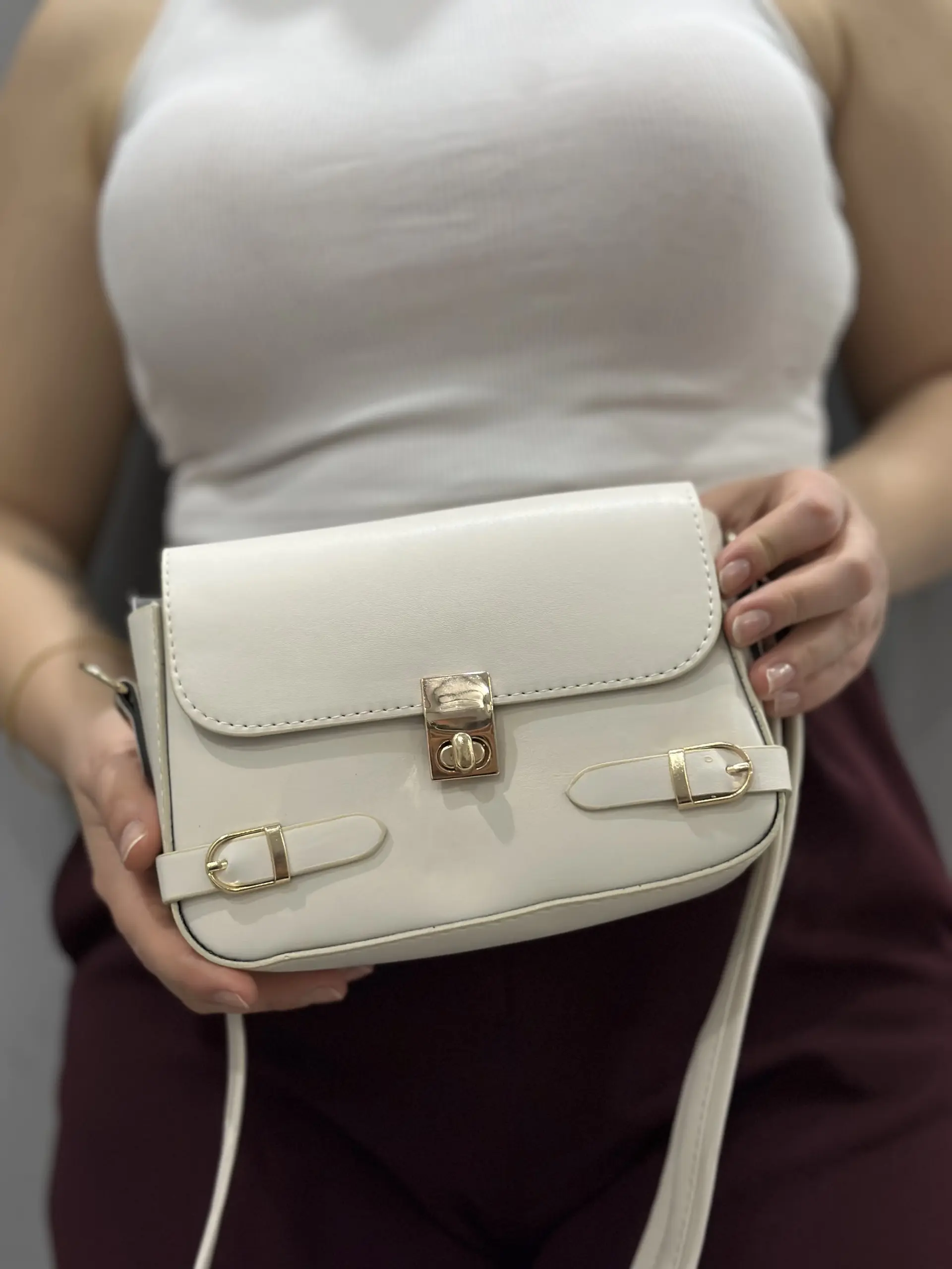Zerej kemerli krem cilt çanta